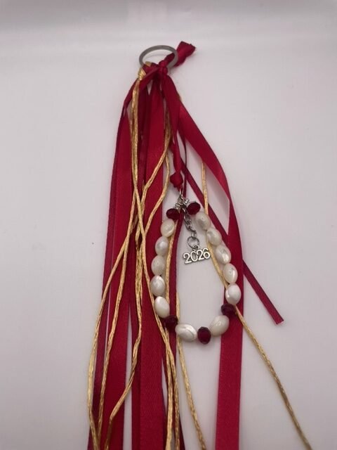 Κρεμαστό γούρι 2026 με φιλντισένιες χάντρες σε κόκκινα και χρυσά χρώματα