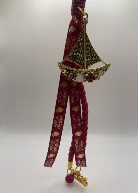 Κρεμαστό γούρι 2026 – καραβάκι σε κόκκινο και χρυσό χρώμα