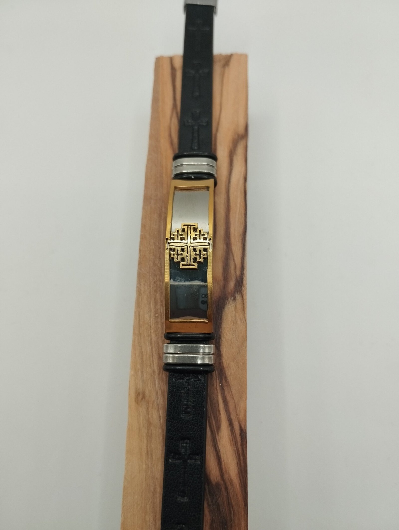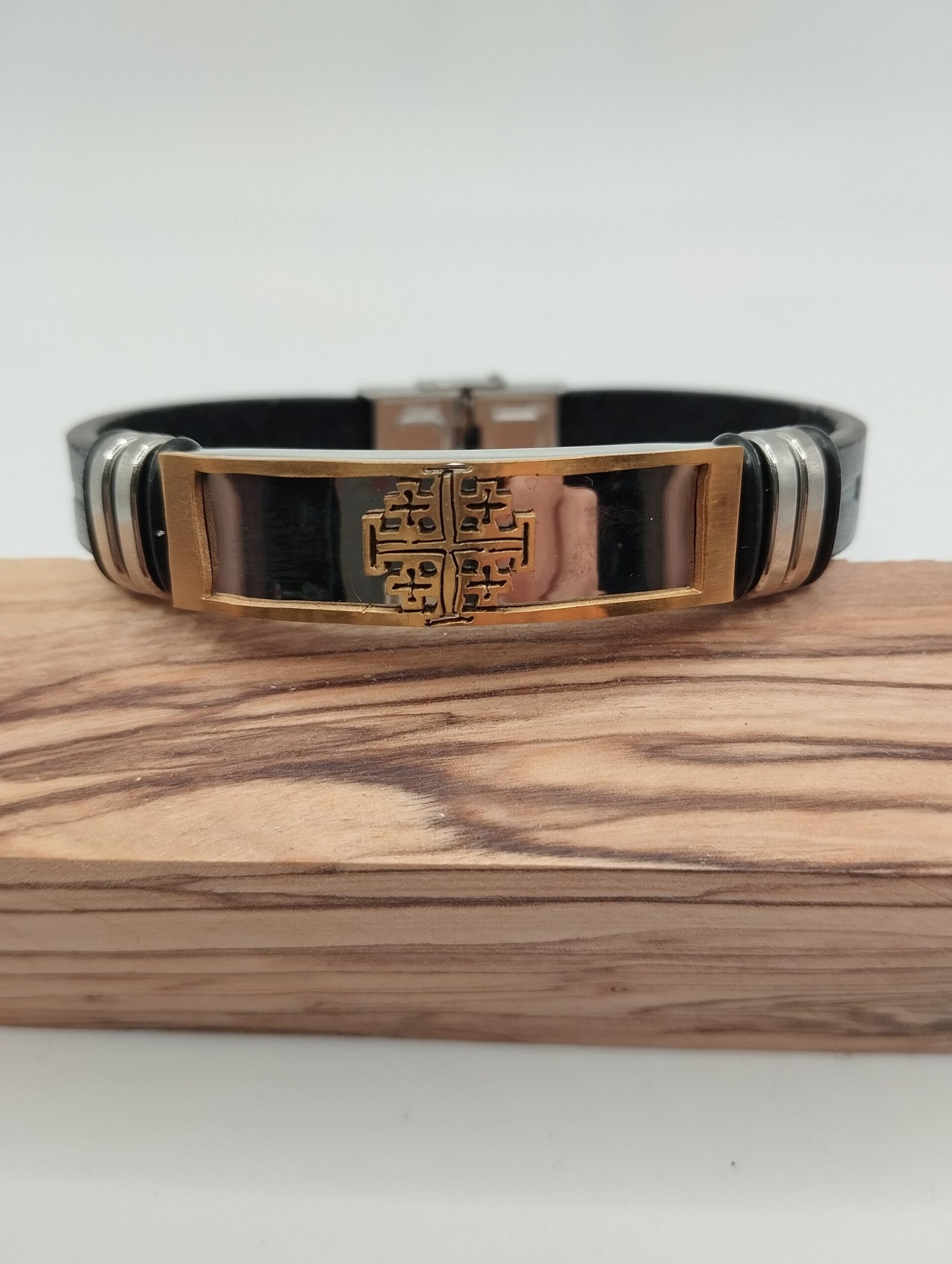 Δερμάτινο βραχιόλι με ατσάλινα στοιχεία και μαύρο λουράκι
