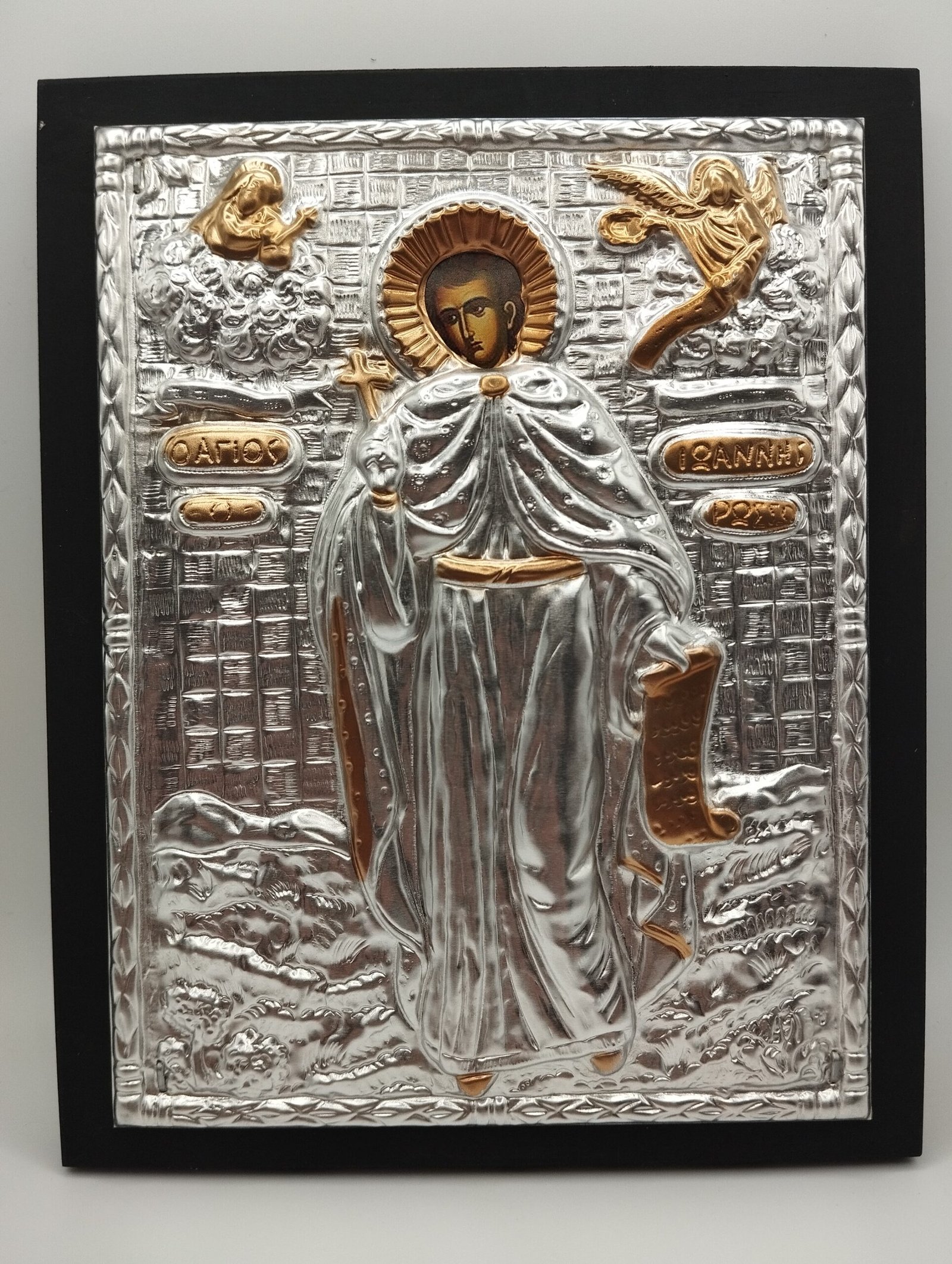 Επάργυρη εικόνα του Αγίου Ιωάννη του Ρώσου (15*19 εκ.)