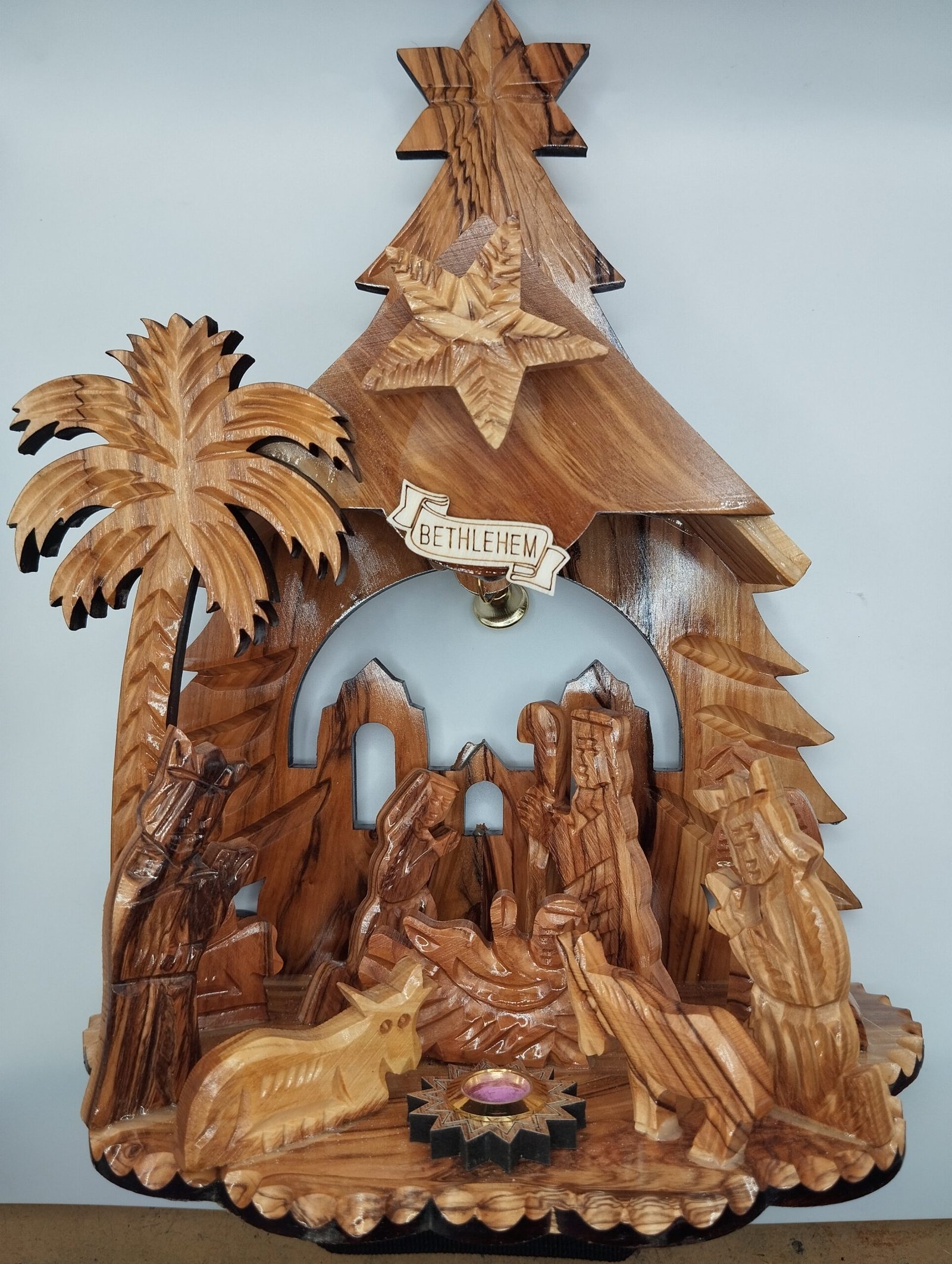 Φάτνη από ξύλο ελιάς από τους Αγίους Τόπους με μουσική (25*20 εκ.)