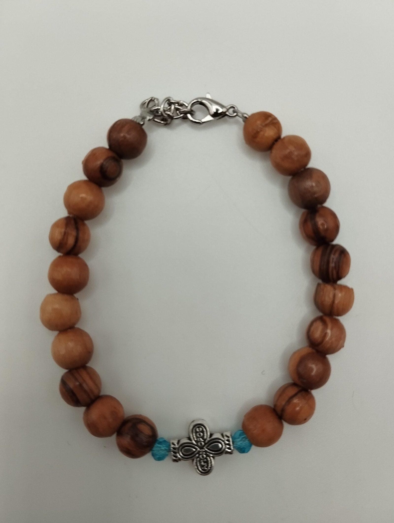 Βραχιόλι με χάντρες από ξύλο ελιάς και μπλε λεπτομέρεια