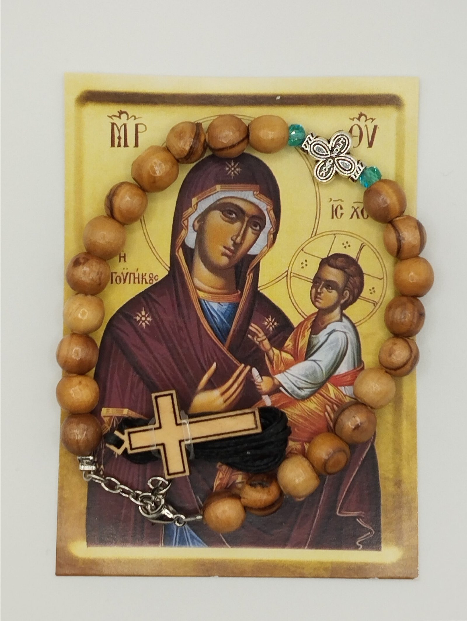 Σετ που περιλαμβάνει βραχιόλι με χάντρες από ξύλο ελιάς, ένα ξύλινο σταυρουδάκι