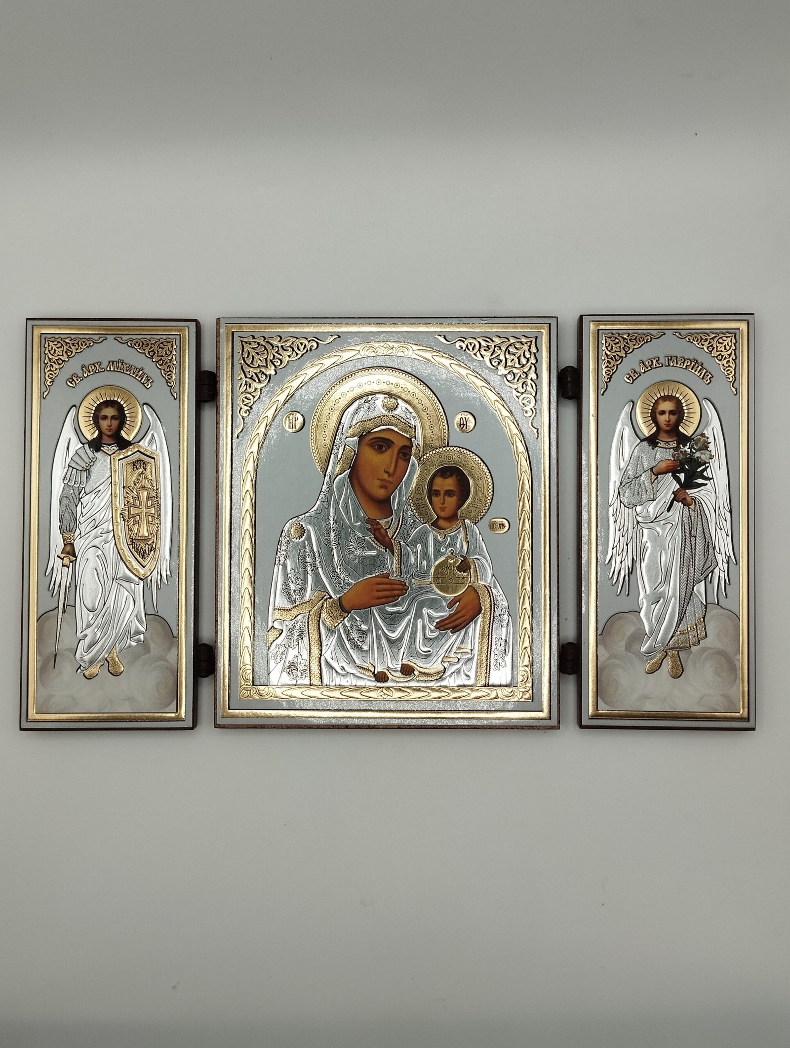 Ανοξείδωτη τρίπτυχη εικόνα της Παναγίας και των Αρχαγγέλων