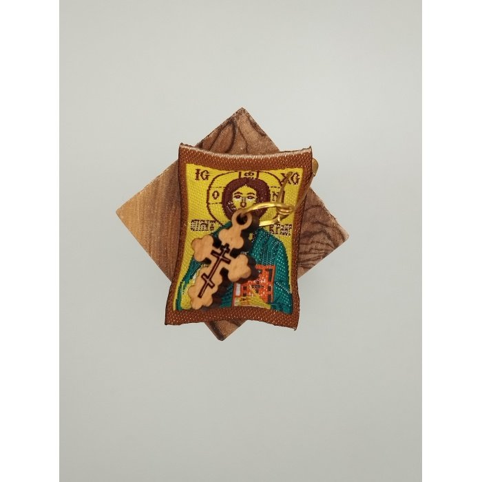 Φυλακτό με τον Χριστό και με σταυρό από ξύλο ελιάς από τους Αγίους Τόπους